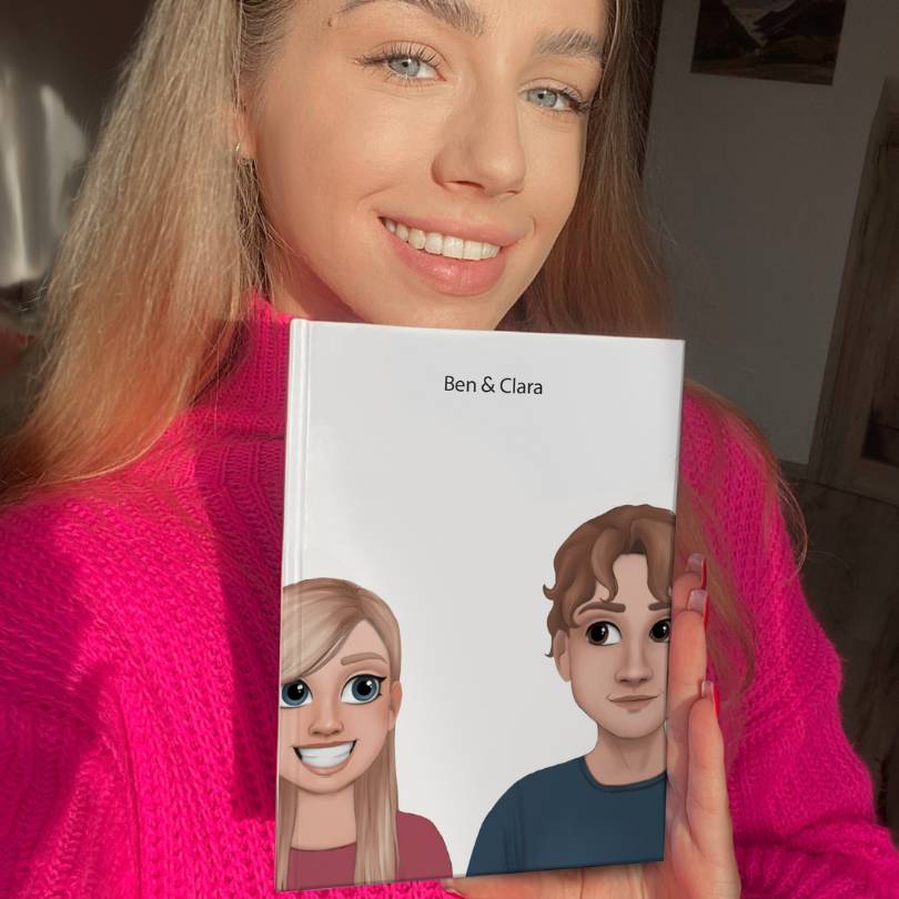 Gib deine Namen ein, erstelle die Avatare und dein Buch wird angezeigt,